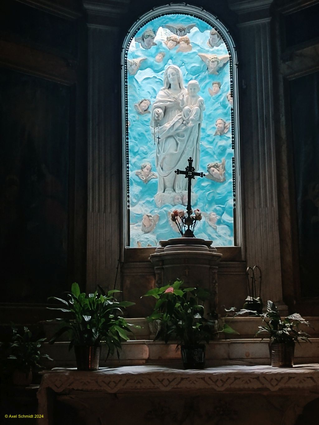 Wasserspeier vorbei, zurück in den Bau und damit in den ältesten Teil, der eigentlichen Kirche.Der zwar fast leere Raum